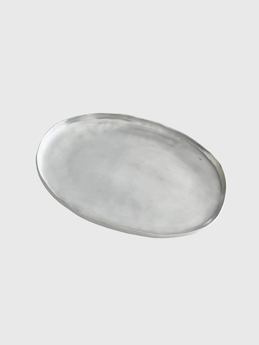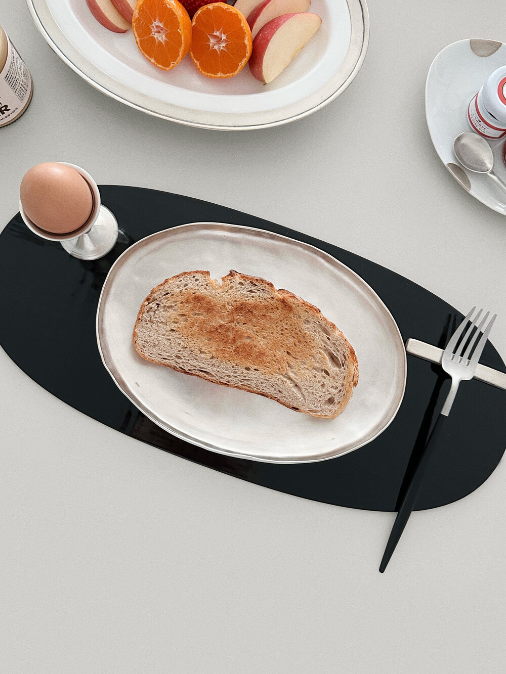 손으로 빚은 도자기 위에 은칠을 여러번하여 정성이 가득 담긴 오벌 접시입니다.
