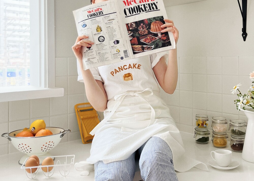 새러데이런치의 귀여운 일러스트와 레터링이 담긴 에이프런을 소개합니다.