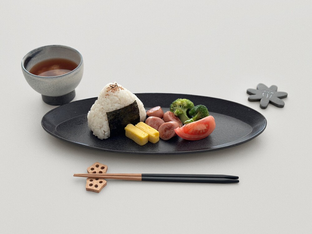 거친 흑토 베이스에 독특한 유면처리로 고동빛, 회색빛의 오묘한 검정색이 담겨져 음식을 돋보여주고 고급스러운 플레이팅을 제공해줍니다.