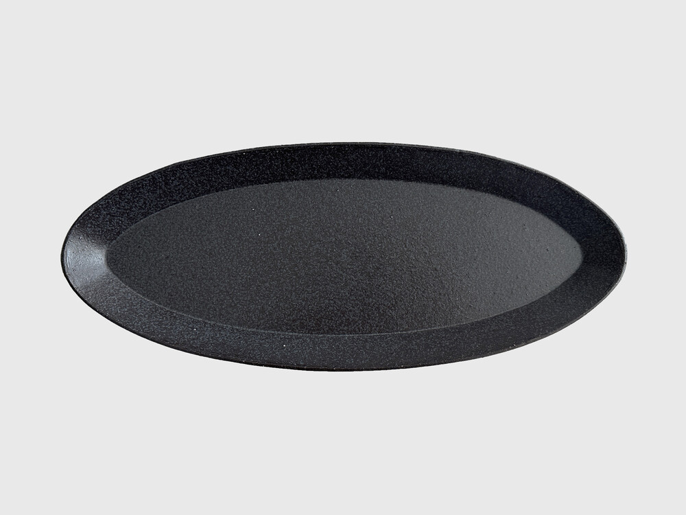 거친 흑토 베이스에 독특한 유면처리로 고동빛, 회색빛의 오묘한 검정색이 담겨져 음식을 돋보여주고 고급스러운 플레이팅을 제공해줍니다.