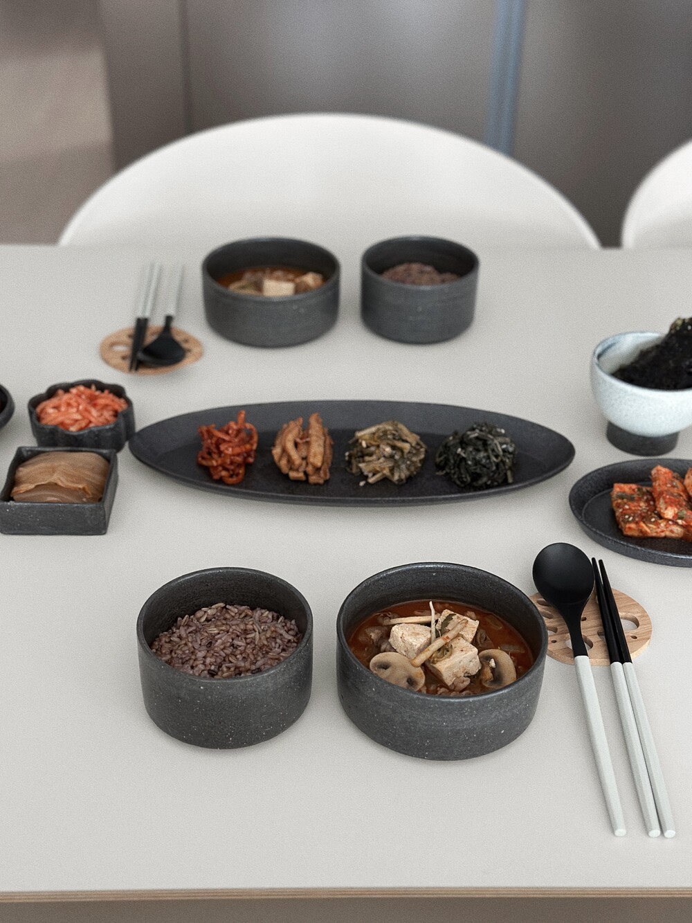 한식 플레이팅에 밥, 국그릇이 빠질 수 없죠^^