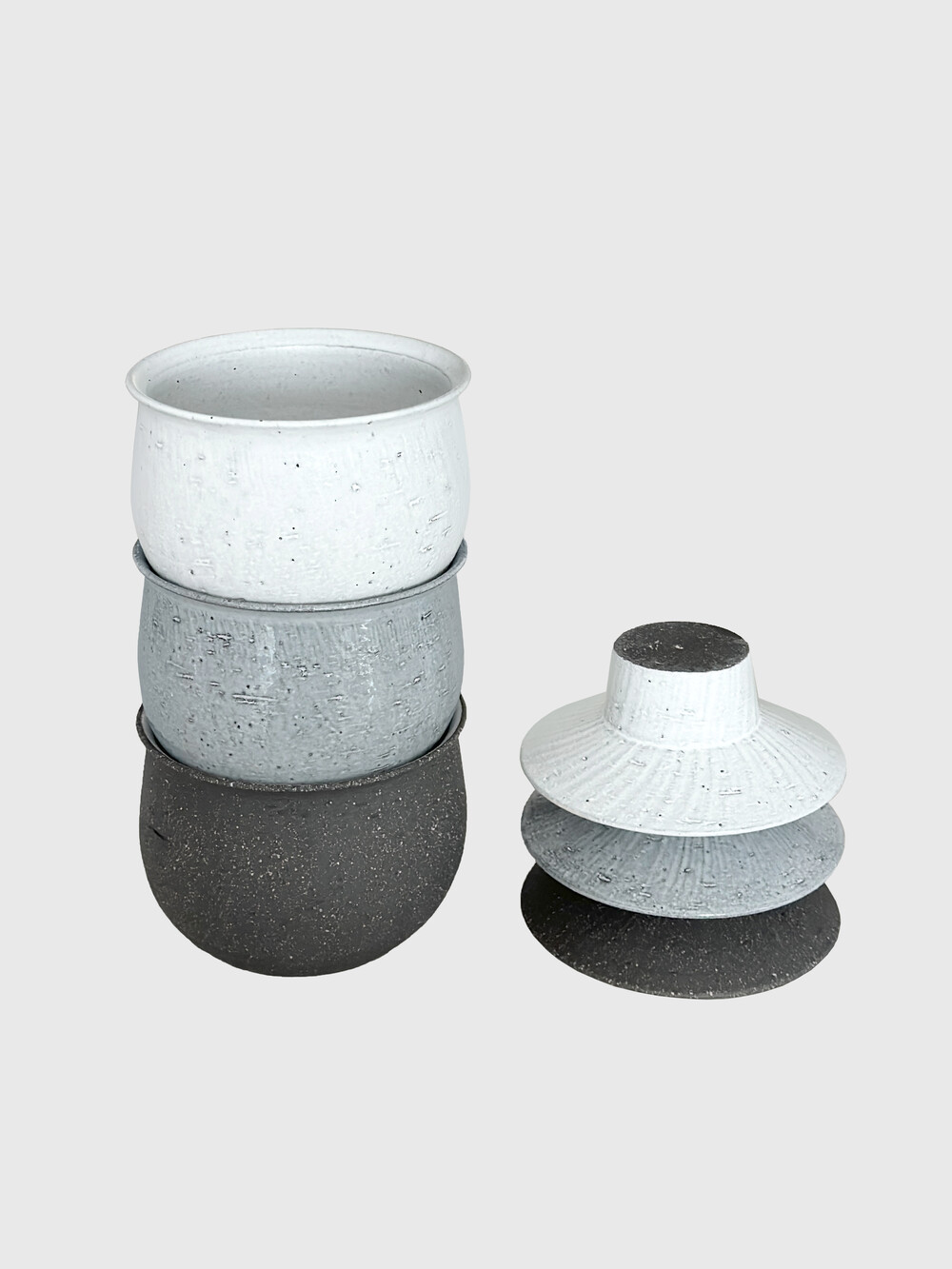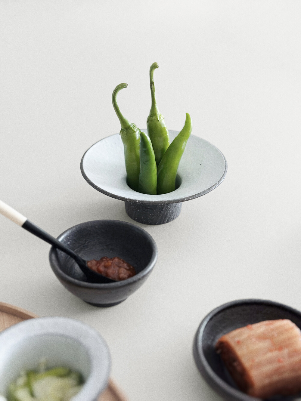 김윤삼 작가의 삼작소는 우리나라의 전통 소재의 아름다운 선을 모티브로 흑, 재, 백 3가지 무채색과 독특한 질감 표현이 담긴 매력적인 도자기 브랜드입니다.