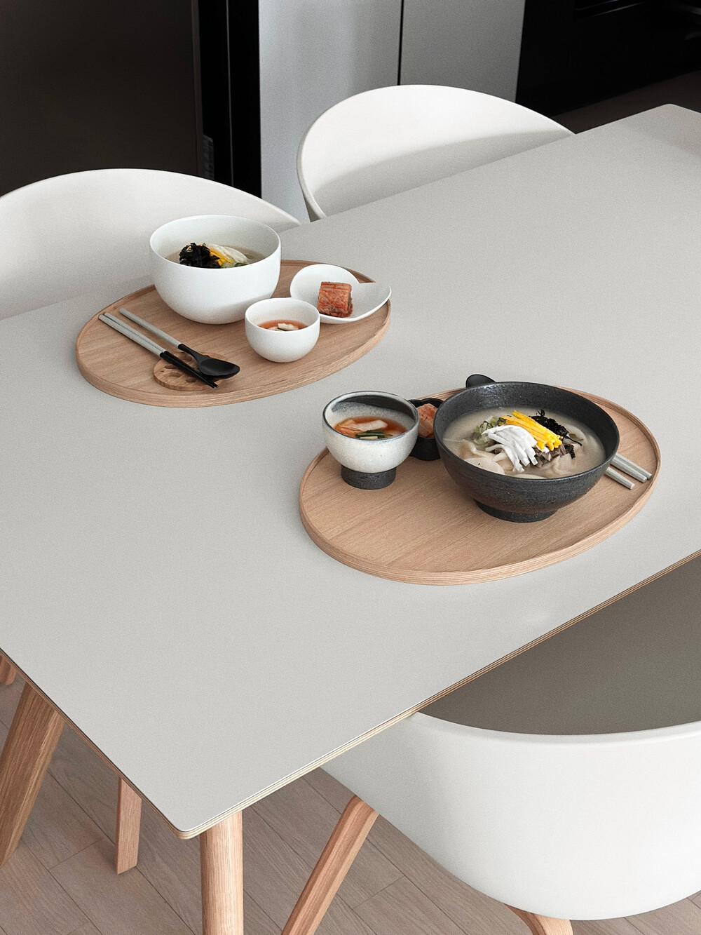 백목의 자연스러운 나뭇결과 감촉 그리고 잔잔한 컬러감이 섬세하고 정갈한 플레이팅을 제공해줍니다.